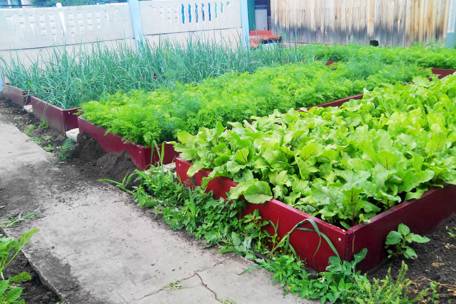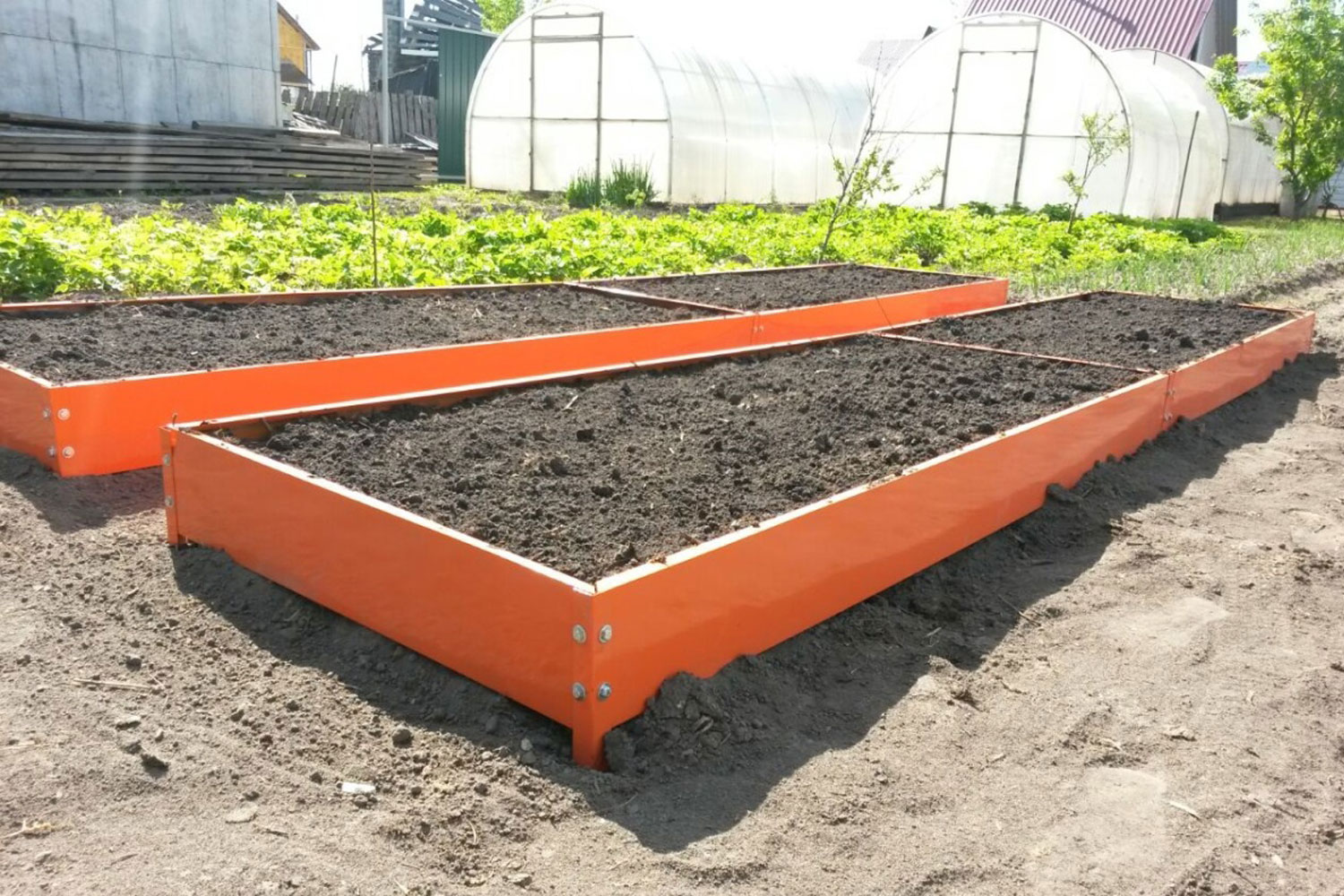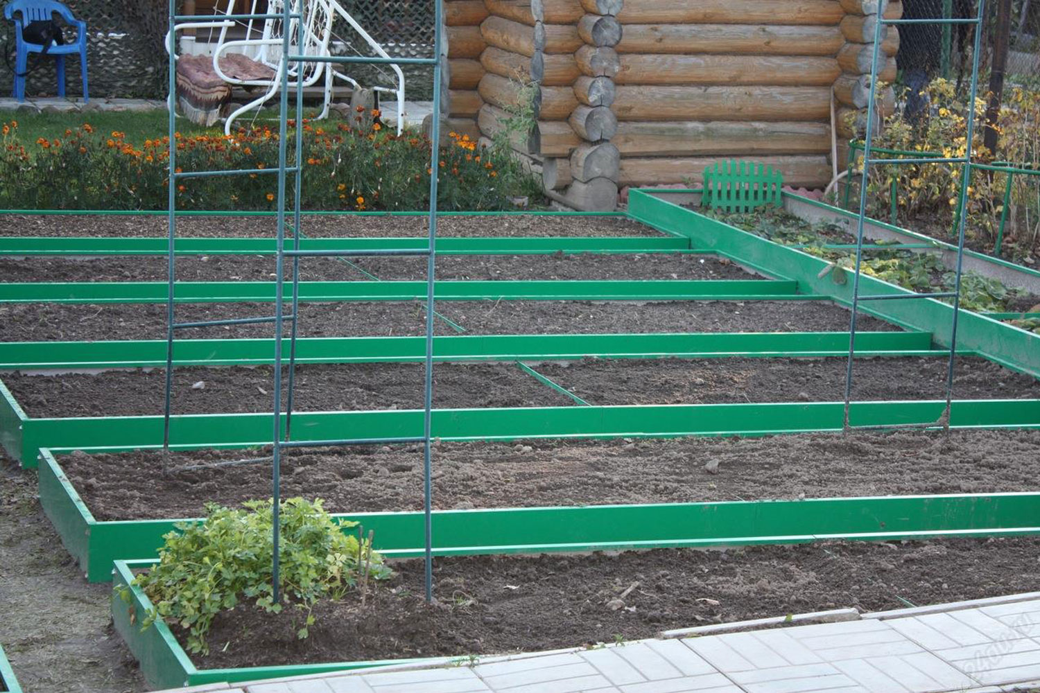 грядки не осядут и не расползутся: металлические ограждения придают грядке неизменную форму, что, кстати, удобно для внесения дополнительного слоя чернозёма или удобрений;